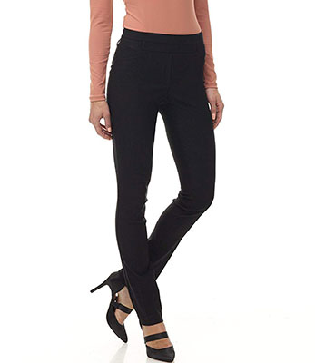 Faux Front Pockets Faux Back Pockets with Loop & Button Detail Faux Front Fly Two-Piece Waistband with Belt Loops Back design has added darts for an improved fit. Slim Leg Opening is sleek and pairs well with any shoe, dress it up or down for day and evening looks! |